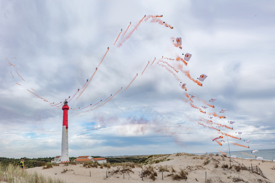 Potom su to htjeli ponoviti na obali, ovog puta pored svjetionika Coubre u francuskoj La Tremladi, iskačući iz helikoptera jedan pored drugoga prije nego što su se vinuli u zrak zahvaljujući inovacijama u odijelima za letenje.